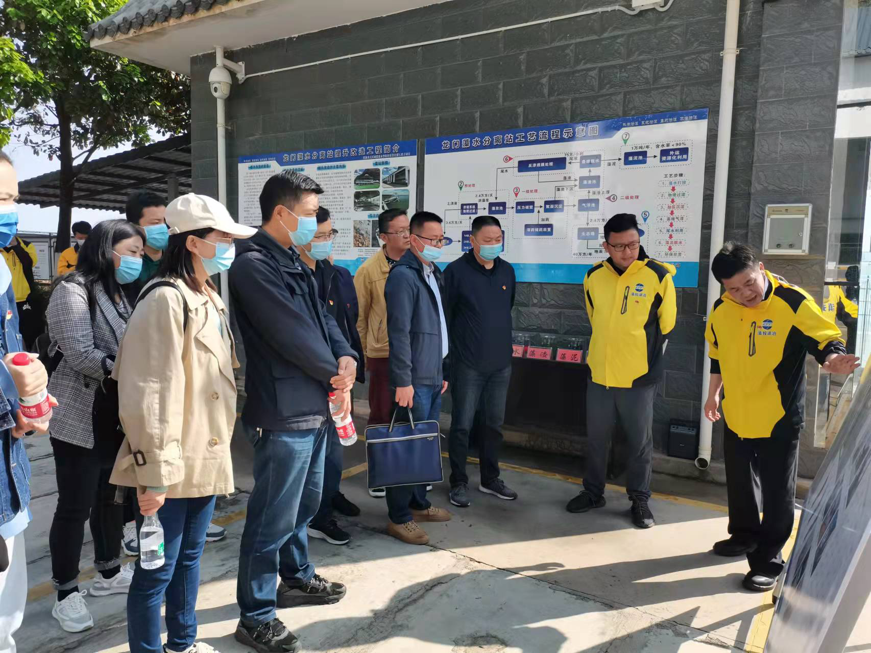 上午9点30分,参与活动的一行人到达龙门藻水分离站。首先由湖泊公司党支部书记陈实同志为大家详细讲解了滇池蓝藻的形成以及滇池蓝藻水华日常防控及应急处置工作,带领参观了滇池蓝藻的处理工艺流程,见证滇池富藻水如何变成清澈的尾水,在龙门藻水分离站的出水口处,看着徐徐流淌的清澈的滇池水,同志们纷纷感叹滇池治理的难度以及滇池治理获得成效的不易。