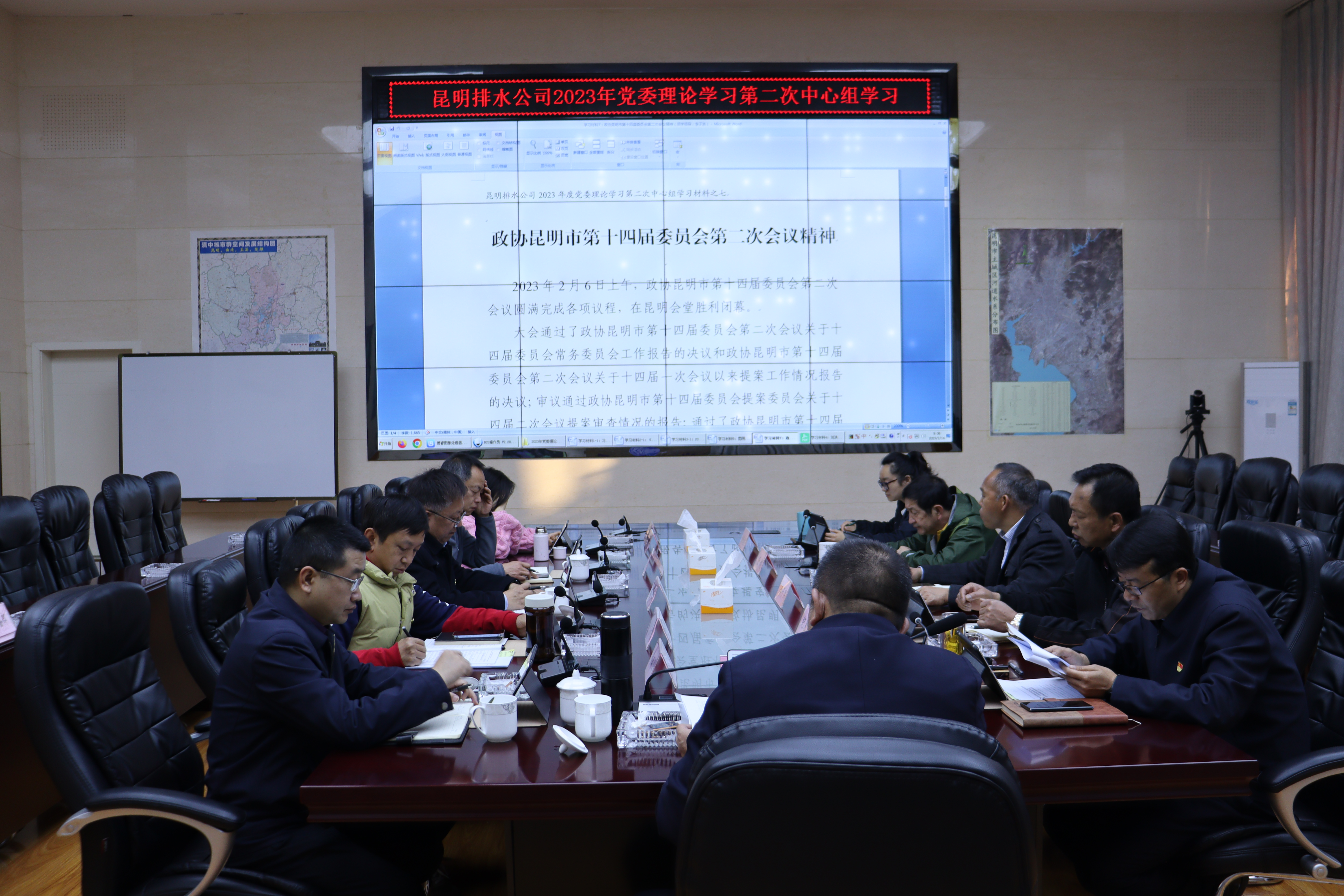 2023年2月14日下午,昆明排水设施管理有限责任公司党委组织开展2023年党委理论学习第二次中心组专题学习,本次专题学习采取集中学习和个人自学相结合的方式进行,集中学习了习近平在学习贯彻党的二十大精神研讨班开班式上的讲话、刘洪建在2022年度党委(党组)书记抓基层党建工作述职评议会议上的讲话,云南省委、昆明市委经济工作会议精神,昆明市十五届人大二次会议、政协昆明市十四届二次会议精神,《党建引领市属国有企业高质量发展若干措施》、《中国共产党处分违纪党员批准权限和程序规定》,云办发〔2023〕1号、昆发〔2023〕3号、昆发〔2023〕4号文件精神,自主学习了二十大党章修正案学习问答(1-5)。学习由昆明排水公司党委书记、董事长和奎主持,昆明排水公司领导班子成员、总经理助理参加。