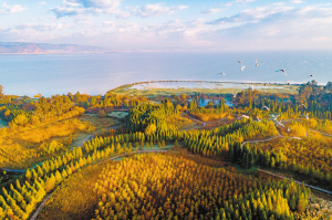 近年来,昆明市持续推进滇池流域生态修复工作,建设以湿地为主的环滇池生态带6.29万亩,已建成湖滨湿地54个、面积4.57万亩,形成平均宽度约200米、植被盖度80%以上的闭合生态带。
