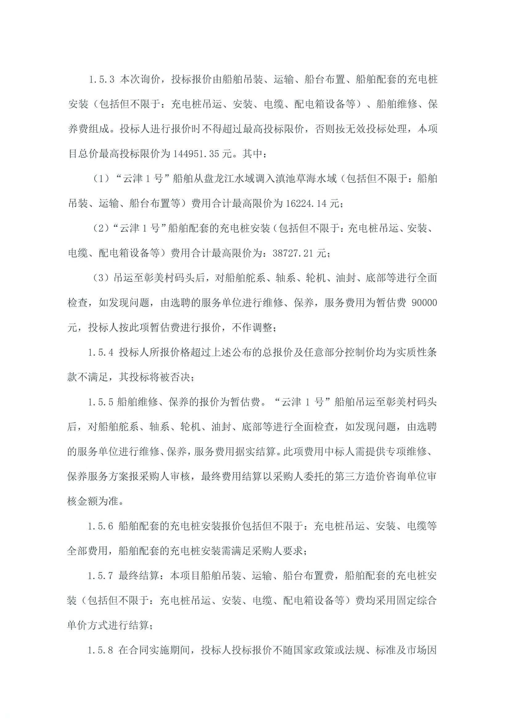 选聘“云津1号”船舶调入草海水域运营服务单位项目询价函